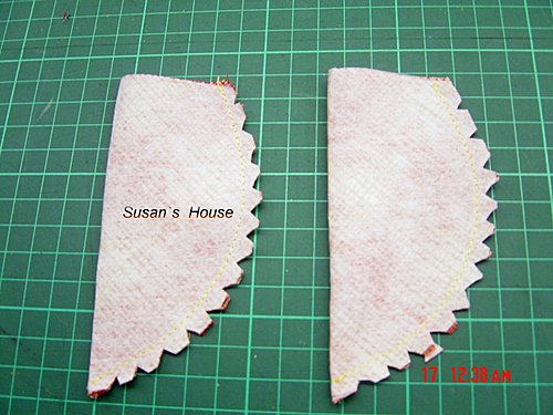 (2) 先制作翅膀,将两片布料分别正面朝里對折,